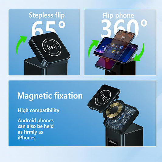 Increase quantity for Embox 7-in-1 Gan Charger 65W Fast Charger | Type C USB 2 AC Sockets (2500W) Wireless Fast Charging | Multi-Port Desktop Charger for Laptop, iPhone, Android, Portable Charging Station