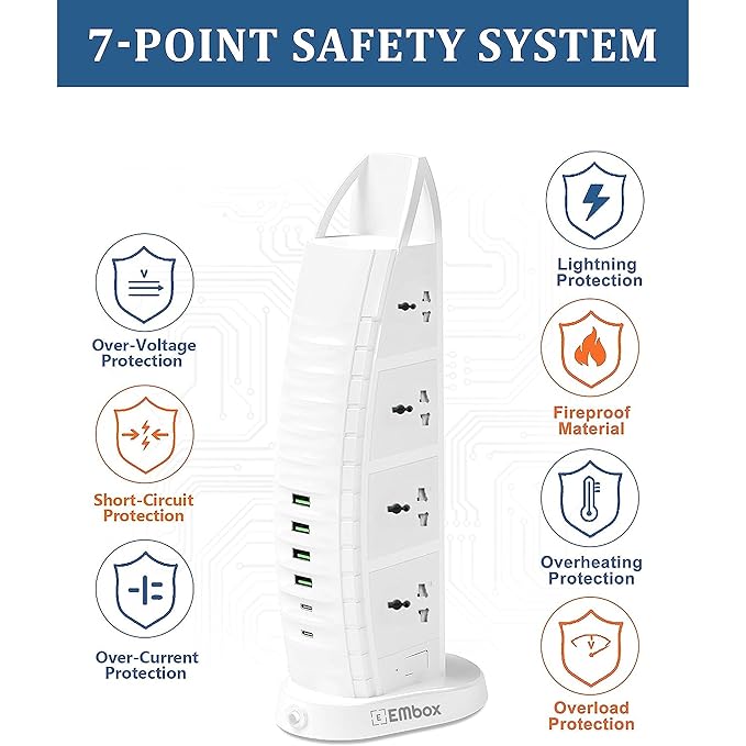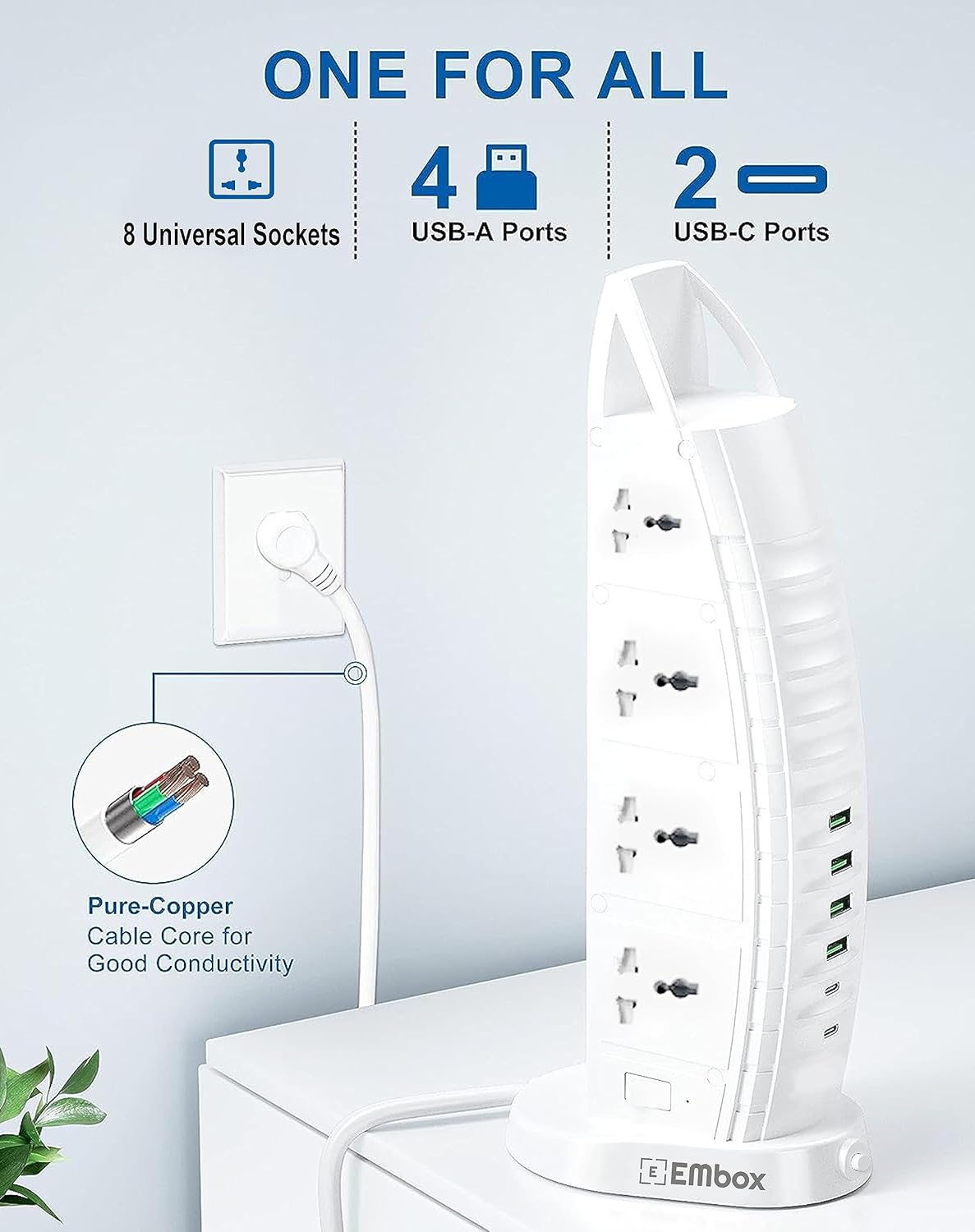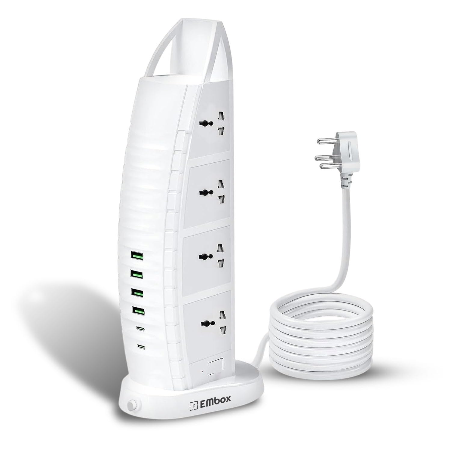 EMBOX Cube Extension Board with USB Port with Universal Sockets with Overload Protector, Indicator, 2 mtr Extension Cord, Safety Shutter (4 Socket + 6 USB + 5 mtr)
