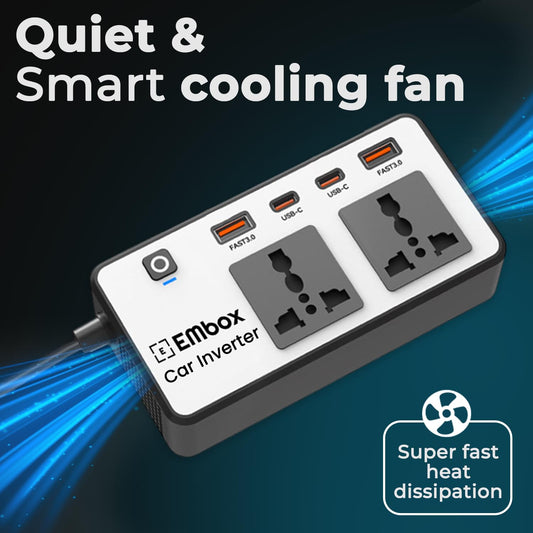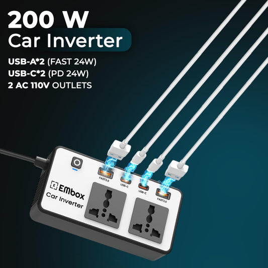 Decrease quantity for mbox 200W Car Power Inverter Laptop Charger with 2 USB (6.2A Max) & 2 C-Type (1 * 27WPD) Smart USB Ports, 2 AC Universal Outlets and 12V DC to 220V AC with QC3.0, White