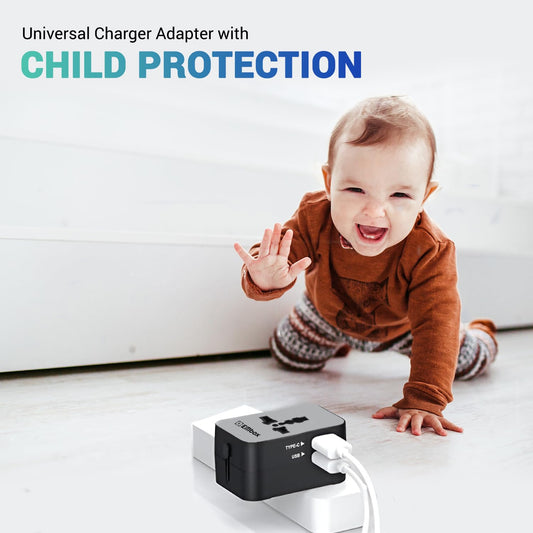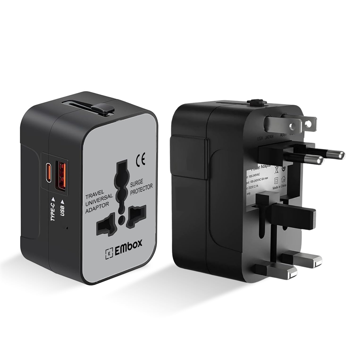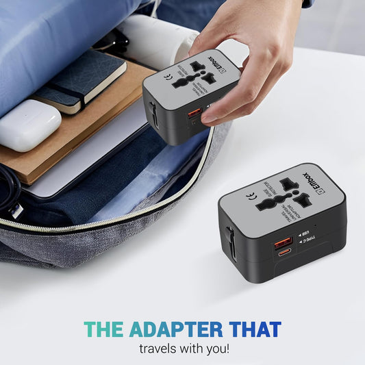 Embox Universal Travel Adapter | All-in-One Worldwide Charger Adapter with Type C, USB & Type A Ports | Supports 224+ Countries | International Plug for Phone, Laptop, Gadgets (Black-Type C)