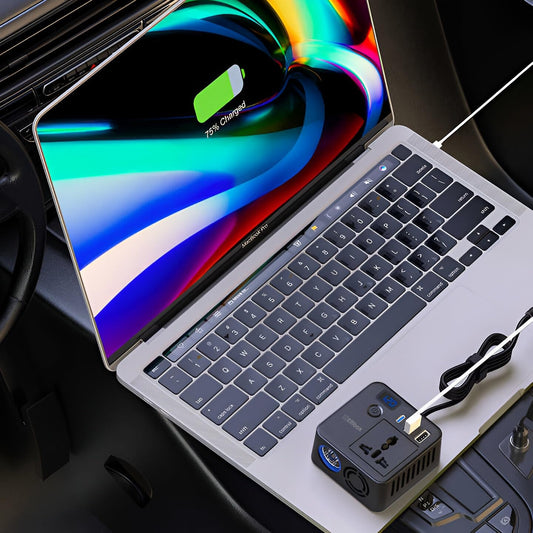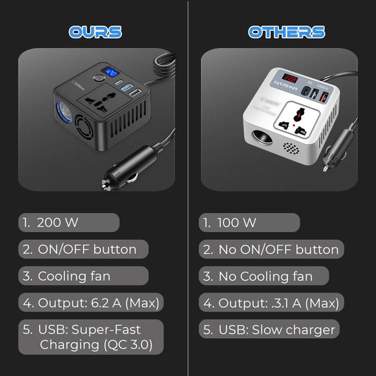 Increase quantity for Embox 200W Car Power Inverter Laptop Charger with 2 USB (6.2A Max) & 2 C-Type (1 * 27WPD) Smart USB Ports, 2 AC Universal Outlets and 12V DC to 220V AC with QC3.0, Black