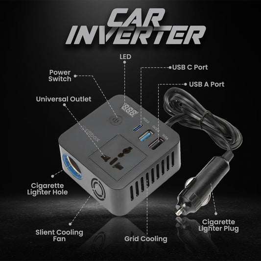 Decrease quantity for Embox 200W Car Power Inverter AC Universal Outlet Car Laptop Charger with 2 USB (6.2A) & 1 C Type(27W PD) Smart USB Ports 12V DC to 220V AC Mini Inverter with Digital Display Cooling Fan On/Off Button