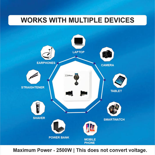 Embox Multi Plug Adapter with USB Ports | Universal 2-Pin Plug Socket | Multi USB Charger Adapter A & Type-C | Compact Fast Charging Power Adapter Plug (Blue)