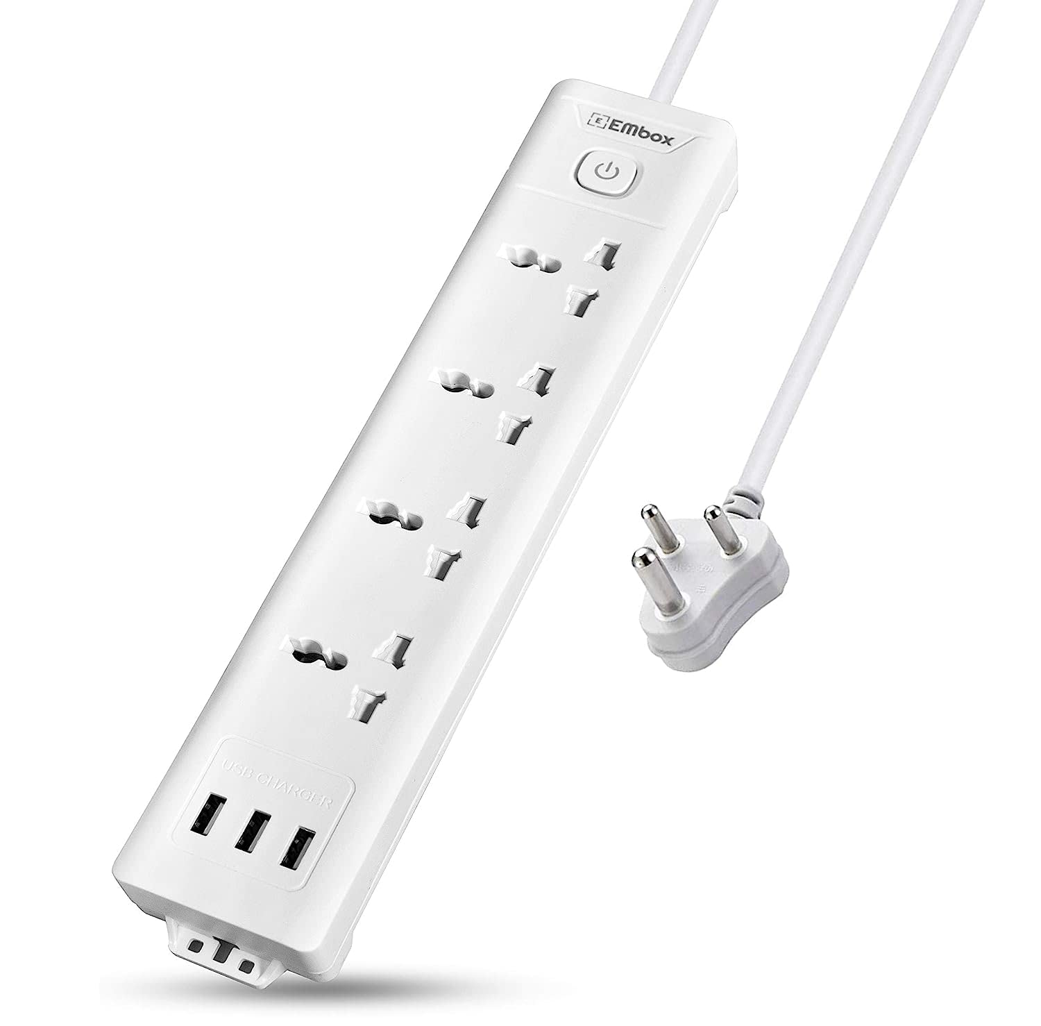 Embox 10A Extension Board with 5 Meter Cable with Master Switch with 4 Universal Sockets 3 USB Ports 2500W (4 Sockets + 3 USB, 5 Mtr Cord Length)
