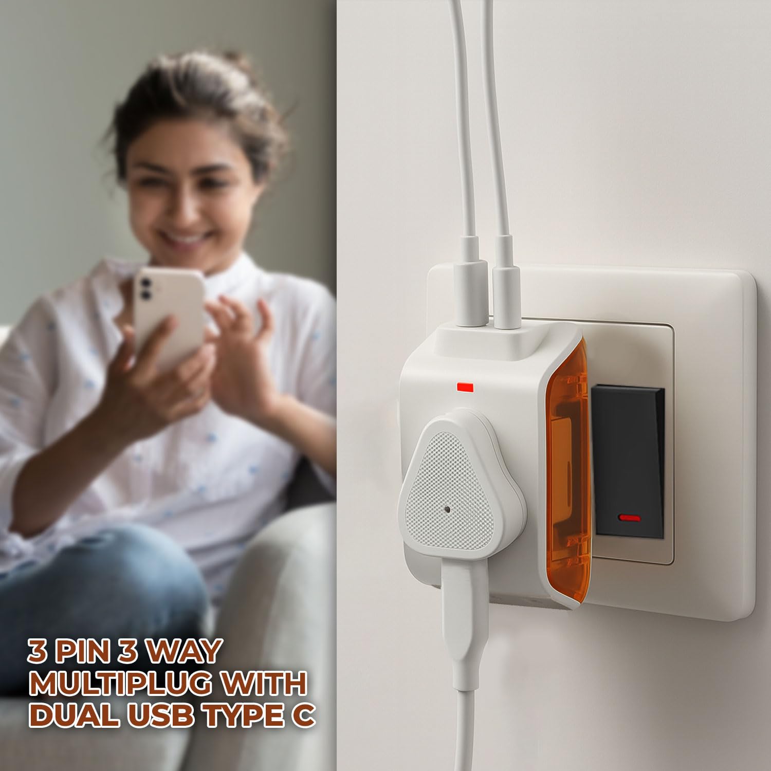 - Multi Plug Adapter with USB Ports This compact multi plug adapter features a universal socket and supports 2-pin plugs. It includes USB-A and USB-C ports for fast charging, making it a smart usb adapter for modern devices.